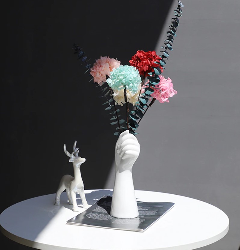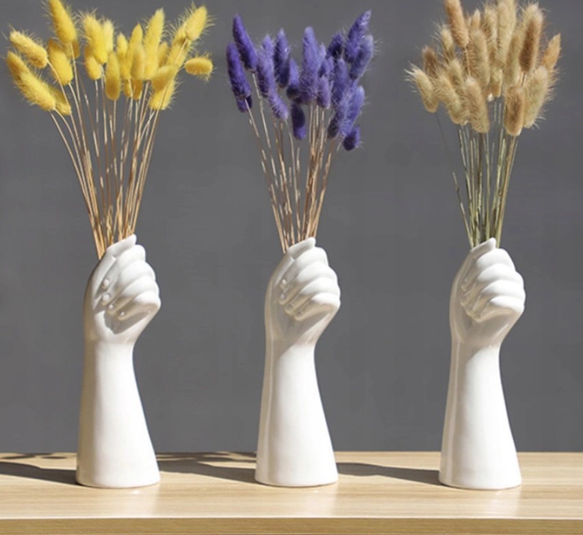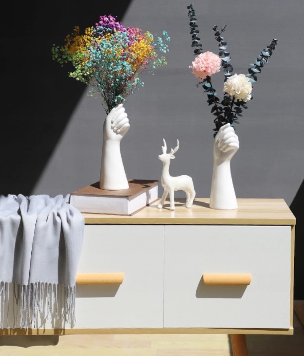 Lieliska un interesanta dekorācija Jūsu interjeram. Piemērots visām telpām: guļamistabai, bērnu istabai, viesistabai, ēdamistabai. Jūs varat uzsūkt dzīvus ziedus vai likt žāvētus vai viltus ziedus. Lieliski piemērots arī dažādu priekšmetu uzvilkšanai: grima otām vai zīmuļiem. Radīs ilūziju, ka tava roka tur tavas mantas.