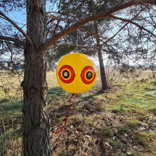 - LIELS DIAMETRS – balona diametrs ir līdz 40 cm. Tas pārvietojas vējā un ir paredzēts, lai apmulsinātu putnus un liktu tiem uzskatīt teritoriju par bīstamu.