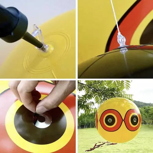 - PAKĀRINĀMS – balonu atbaidītājs atrodas uz auklas, tāpēc plīvo vējā. Lai atbaidītu putnus un atturētu tos no ierasties noteiktās vietās, balons ar lentēm un spoguļu uzlīmēm ietekmē to dažādos stimulus, izmantojot kustību, gaismas atspulgu un dizainu . Tas darbosies arī kā dārza rotājums.