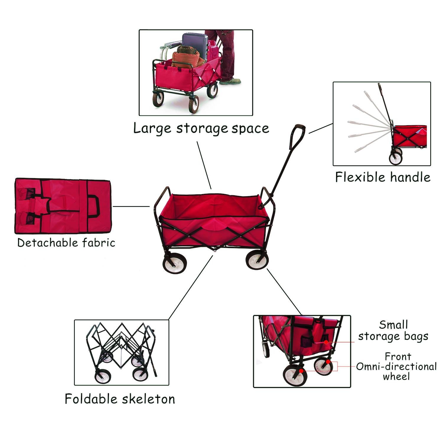 Praktisks saliekamais dārza ratiņi dažādu kravu pārvadāšanai. Izgatavots no augstākās kvalitātes materiāliem. Izturīga metāla konstrukcija ir pārklāta ar pulveri. Izturīgie gumijas riteņi ļauj vienmērīgi braukt pat pie lielas slodzes. Lietošanas vieglumu nodrošina iespēja salocīt visu ratiņu līdz mazam izmēram. Maks. slodze līdz 70 kg.
